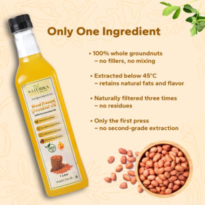 Our Wood Pressed Groundnut Oil is crafted through traditional cold-pressing methods to retain all its natural flavor and nutrients, providing a healthy, rich option for cooking.